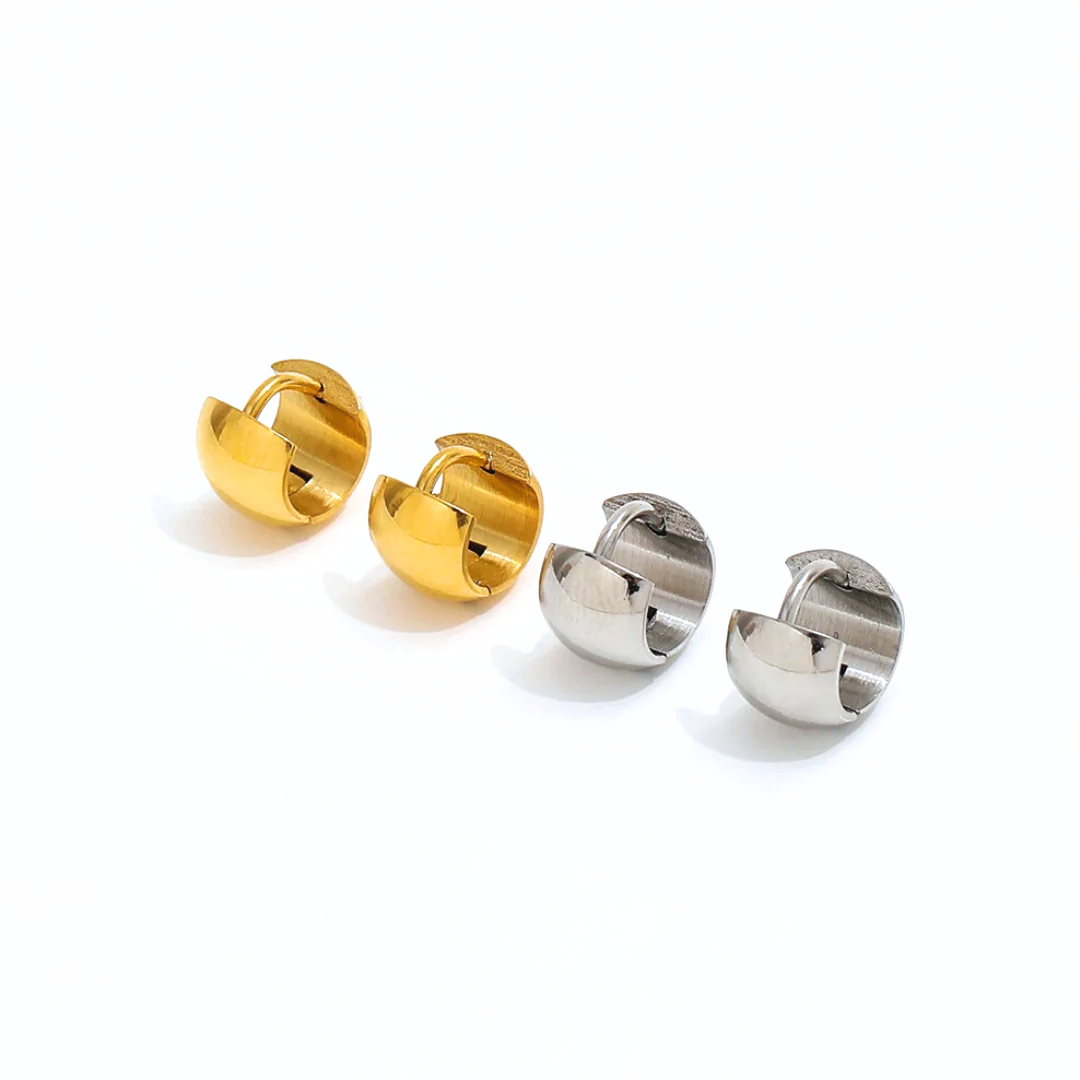 Introducing our Small Chunky Huggies, a striking addition to your jewellery ensemble. These earrings boast a chunky main body that fits snugly against the ear with easy opening, available in both gold and silver options. Crafted with precision, they are made from premium materials, including 18K gold plating, ensuring longevity. You can trust that these earrings are waterproof and resistant to tarnishing. Furthermore, they are nickel-free and lead-free, ensuring they are gentle on sensitive skin.