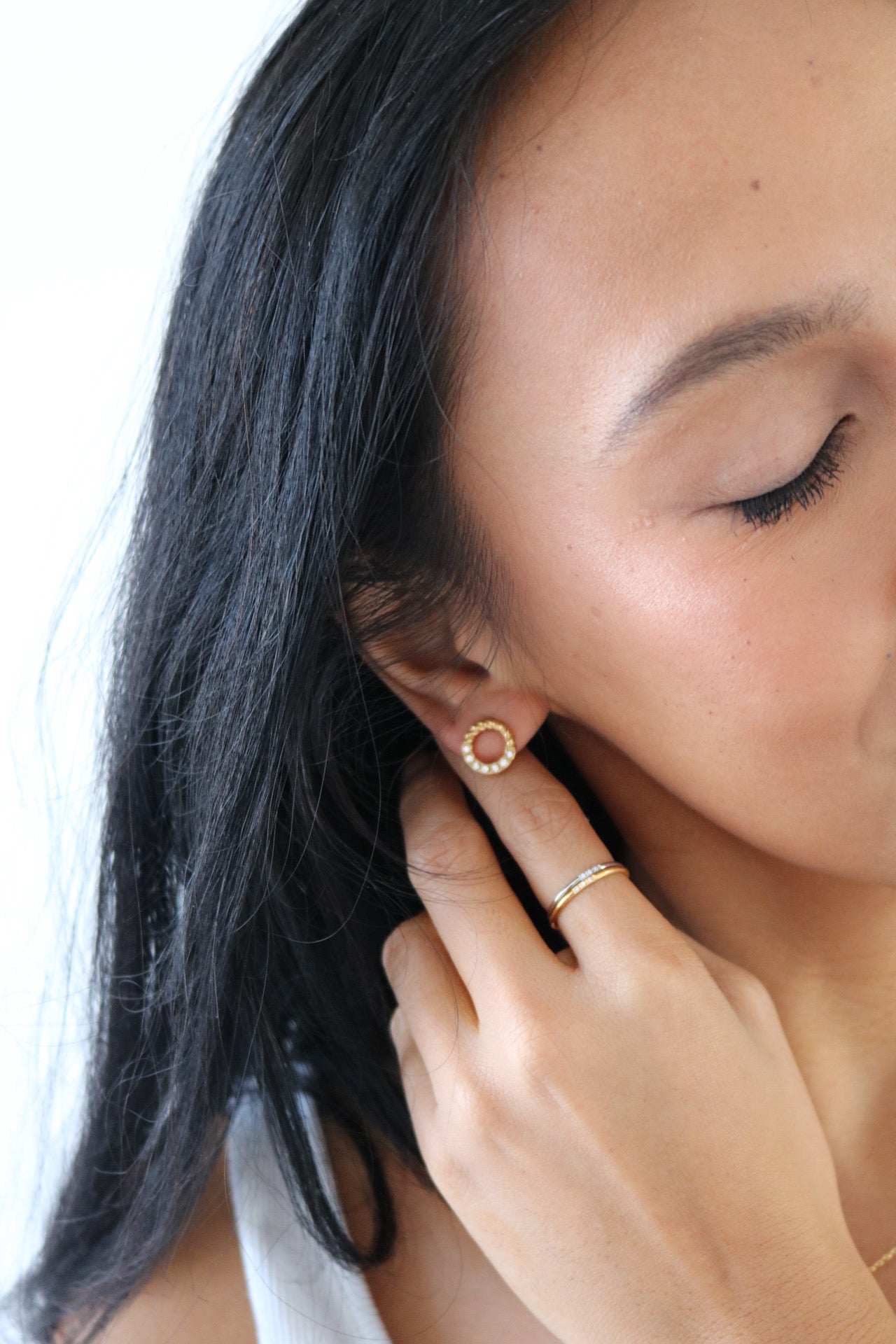 These Twisted Circle Stud Earrings feature a unique and modern design that combines elegance with a touch of edge. Crafted from stainless steel, coated in 18k gold plating each earring showcases a beautiful twisted, circular shape, adding texture and dimension to any look. Whether dressing up for a special occasion or enhancing a casual outfit, these versatile studs offer a bold statement with timeless appeal. Perfect for anyone who loves minimalist yet striking jewellery, these earrings are sure to become a favourite in your collection.