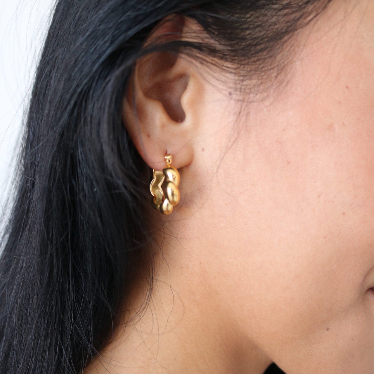 Our gold twist huggie earrings are a chic and versatile accessory that adds a touch of elegance to any look. The small hoop-style earrings hug the earlobe for a snug and comfortable fit. With their sleek and minimalist design, they are perfect for everyday wear or for dressing up. Their subtle yet stylish appeal makes them a must-have in any jewellery collection. Stainless steel - 18k gold plated